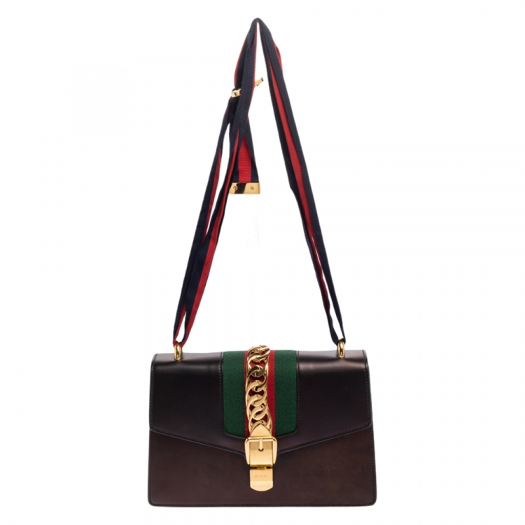 Pre Owned حقيبة كتف غوتشي سيلفي صغيرة بسلسلة ويب جلد سوداء