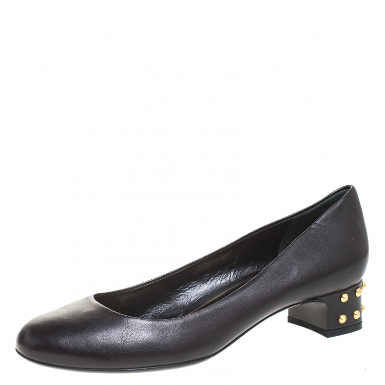 Pre Owned حذاء كعب عالي غوتشي كعب سميك مرصع جلد أسود مقاس 38