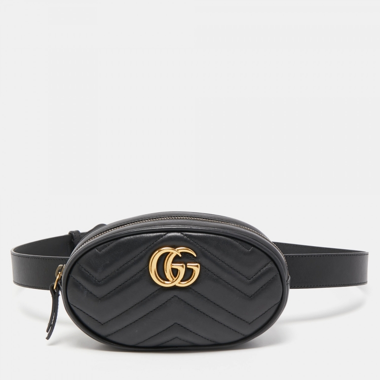 Gucci Black Matelassé Leather GG Marmont Belt Bag
