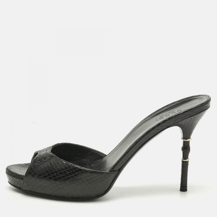 مملوكة مسبقًا صندل سلايد غوتشي كعب بامبو ثعبان أسود مقاس 38