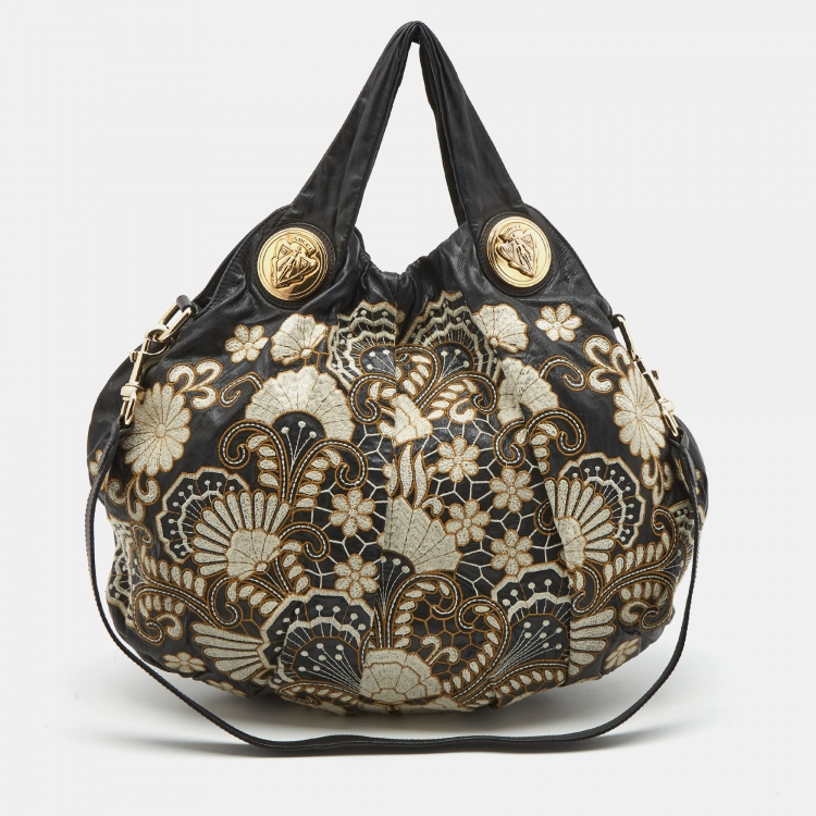 Pre Owned حقيبة هوبو غوتشي هستيريا جلد وكانفاس كريستال جي جي بين/ بني كبيرة
