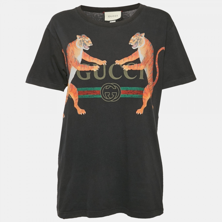 تي شيرت غوتشي قطن مطبوع شعار قديم مستهلك أسود مقاس صغير
