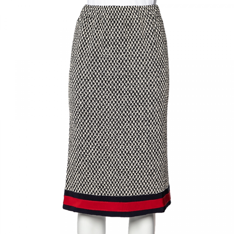 تنورة غوتشي تويد أسود بحافة نمط ويب بطول الركبة مقاس صغير - سمول