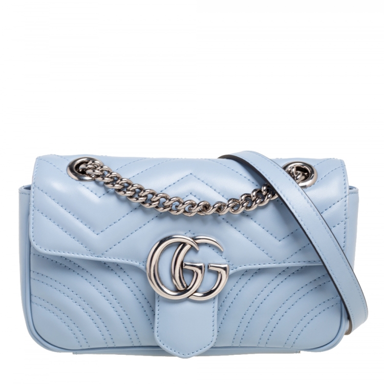 Pre Owned حقيبة كتف غوتشي مارمونت جي جي ميني جلد أزرق