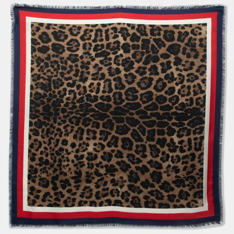 Gucci Brown Animal Printed Silk Border Detail Square Scarf