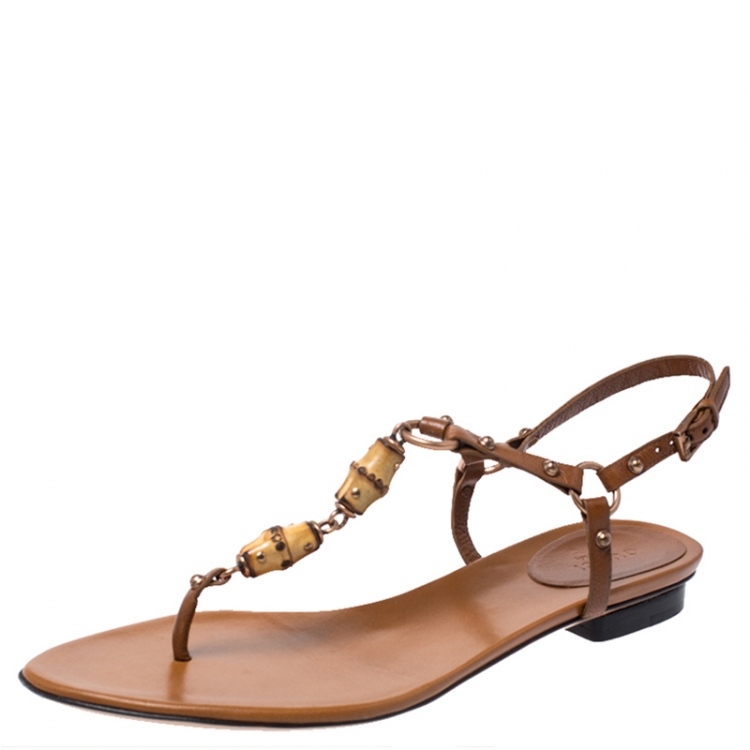 مملوكة مسبقًا صندل إصبغ غوتشي مزخرف بامبو جلد بني مقاس 38