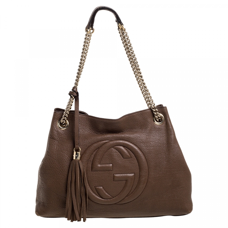 حقيبة يد غوتشي سوهو متوسطة سلسلة جلد بني