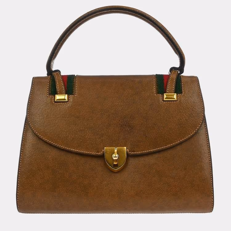 Pre Owned حقيبة غوتشي يد جلد بني