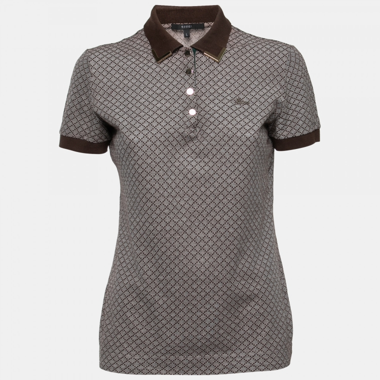 Pre Owned Gucci Brown Patterned Cotton Pique Short Sleeve Polo T-Shirt L