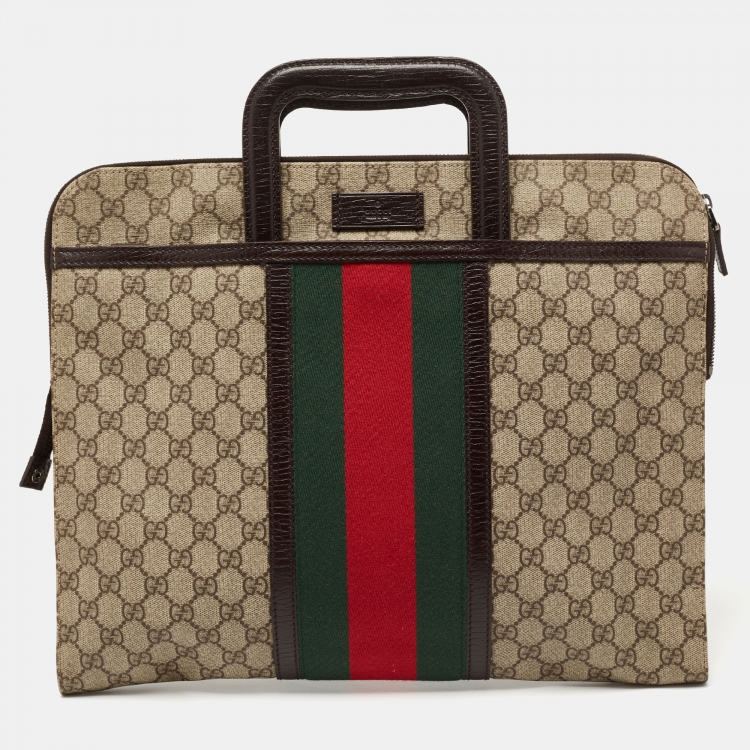 Gucci Brown/Beige GG Supreme Canvas and Leather Web Business Briefcase