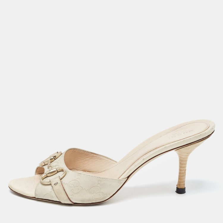 Gucci Cream Leather Hollywood Horsebit Slides Size 38.5