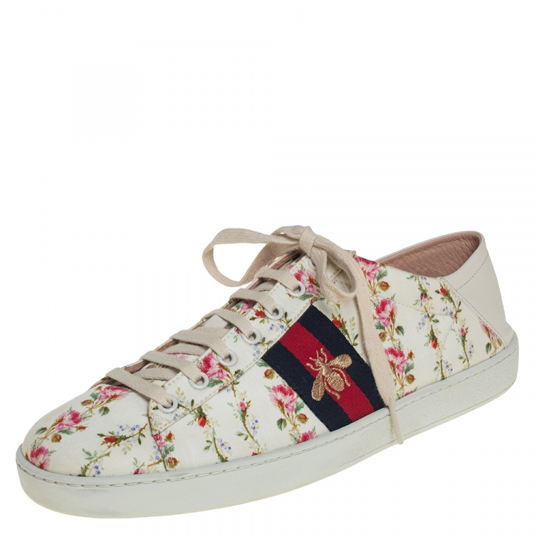 حذاء رياضي غوتشي أيس جلد وكانفاس مطبوع روز أبيض/ كريمي مقاس 40.5