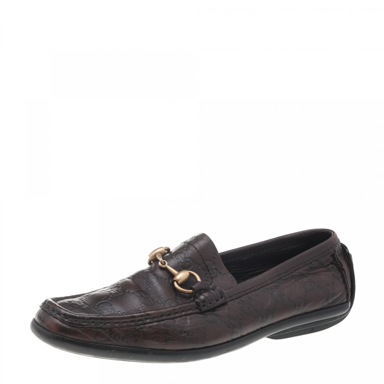مملوكة مسبقًا حذاء لوفرز غوتشي هورسبيت جلد غوتشيسيما بني داكن سليب أون مقاس 37.5