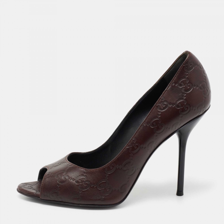حذاء كعب عالي غوتشي بمقدمة مدببة جلد غوتشيسيما بني غامق مقاس 38.5