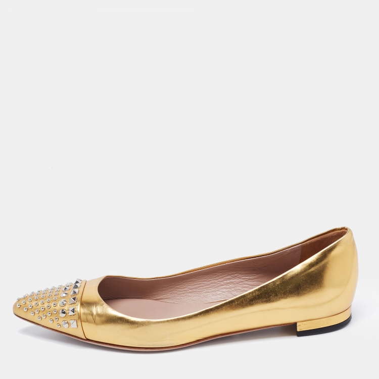 مملوكة مسبقًا Gucci Gold Patent Leather Coline Ballet Flats Size 38