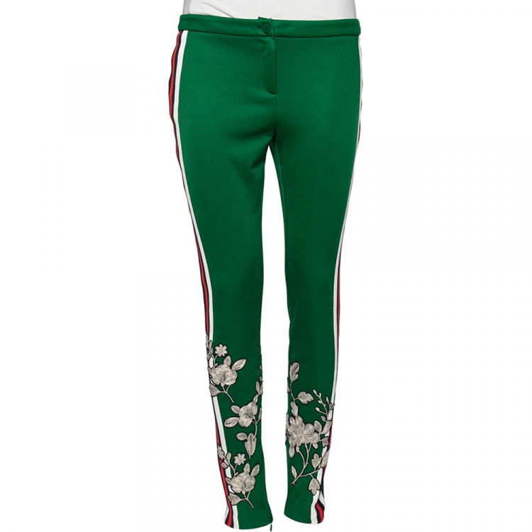 Pre Owned بنطلون غوتشي جيرسيه بنقشة زهور أخضر بحافة بنمط ويب مخططة مقاس متوسط - ميديوم
