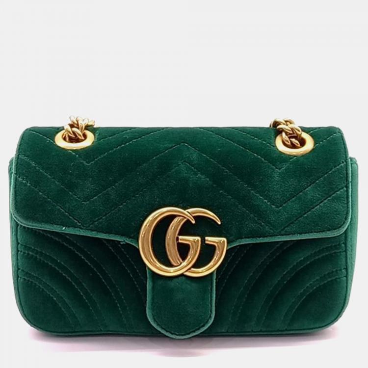 Gucci Green Velvet GG Marmont Shoulder Bag