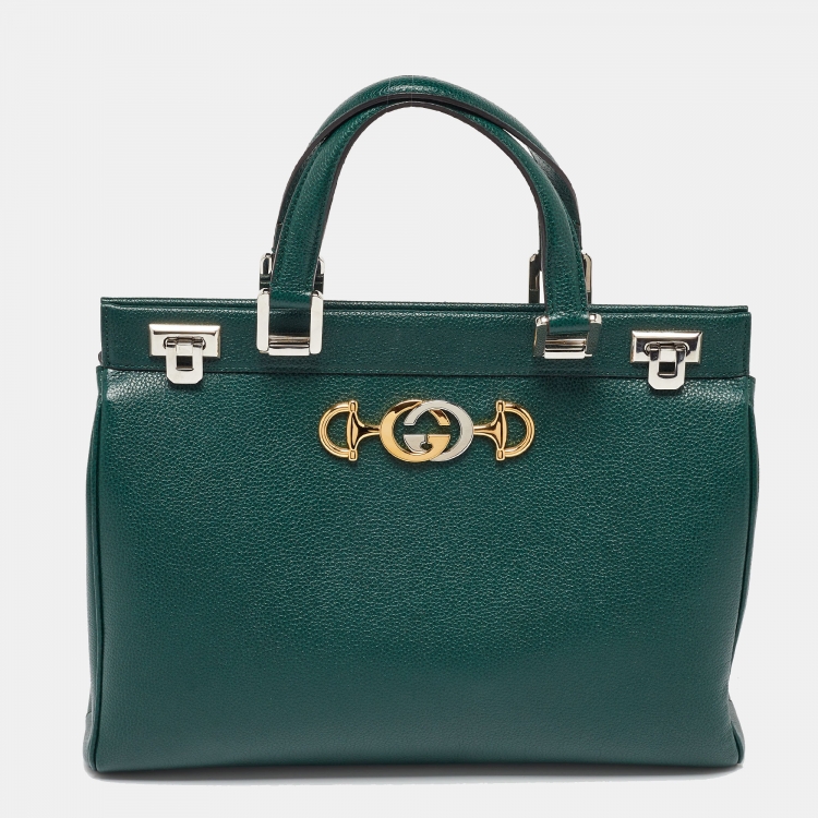 Gucci Green Zumi Leather Medium Top Handle Bag