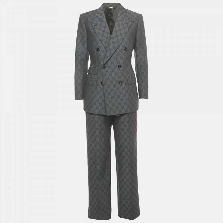 بذلة غوتشي صوف رمادي جاكار GG مصممة مقاس صغير