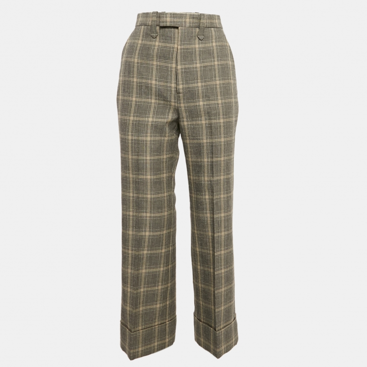 مملوكة مسبقًا Gucci Grey/Beige Prince of Wales Checks Wool Blend Tapered Trousers S