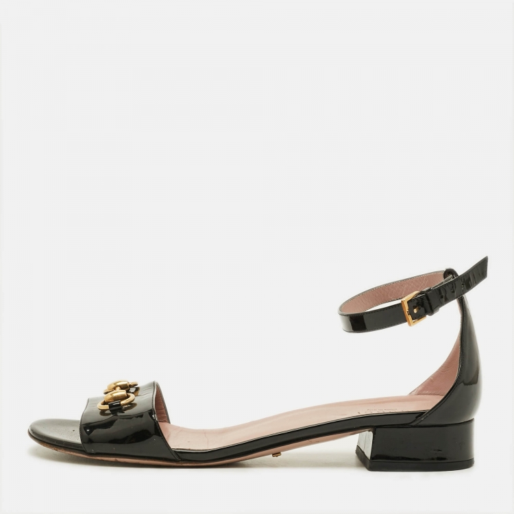 Pre Owned صندل غوتشي بكعب و إبزيم جلد برّاق أسود مقاس 40