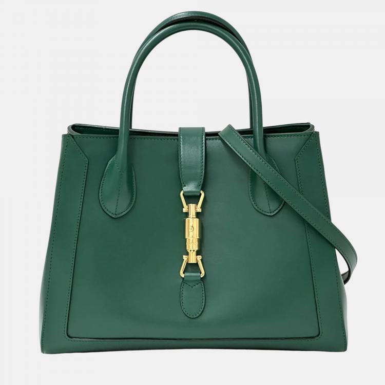 حقيبة يد توتس غوتشي جاكي جلد بطريقتين متوسطة خضراء داكنة