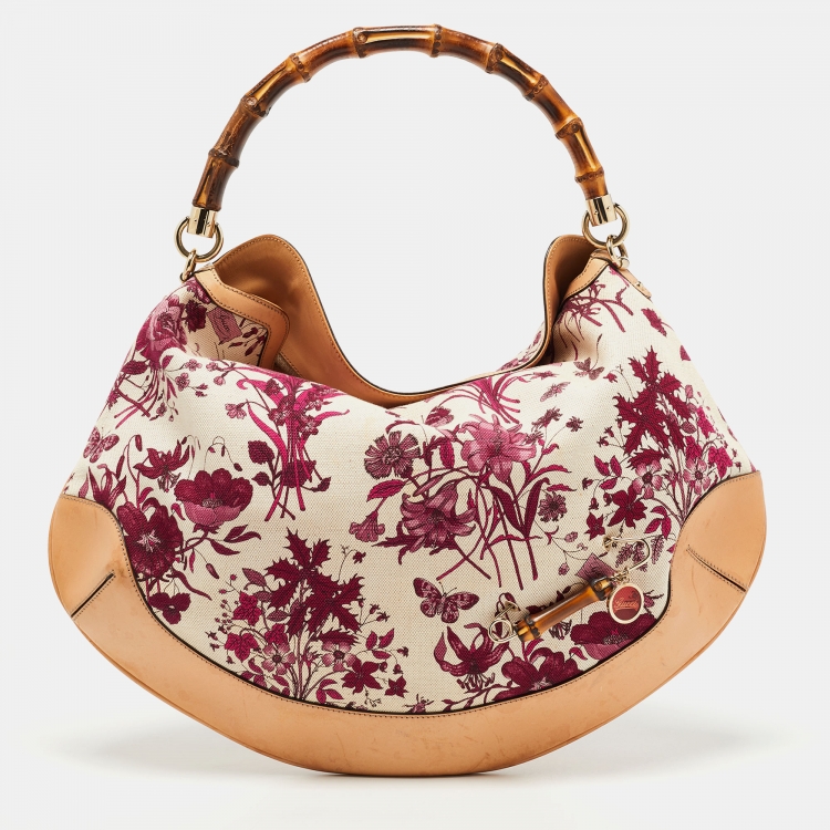 Gucci Magenta/Natural Canvas and Leather Floral Peggy Bamboo Hobo