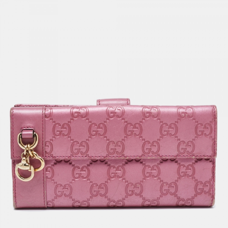 Pre Owned محفظة كونتينينتال غوتشي جلد غوتشيسيما وردية ميتالك بحلية قلب