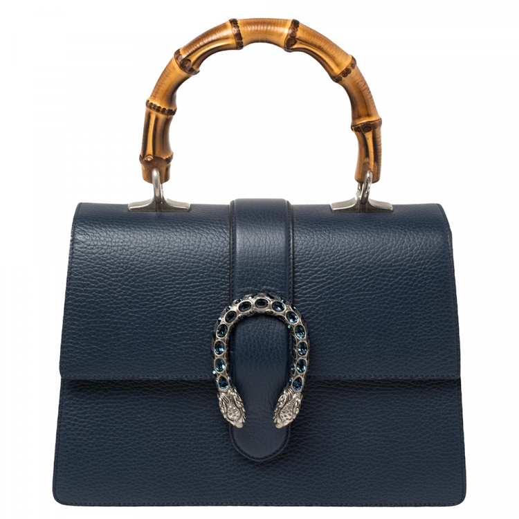 Gucci Navy Blue Leather Medium Dionysus Bamboo Top Handle Bag
