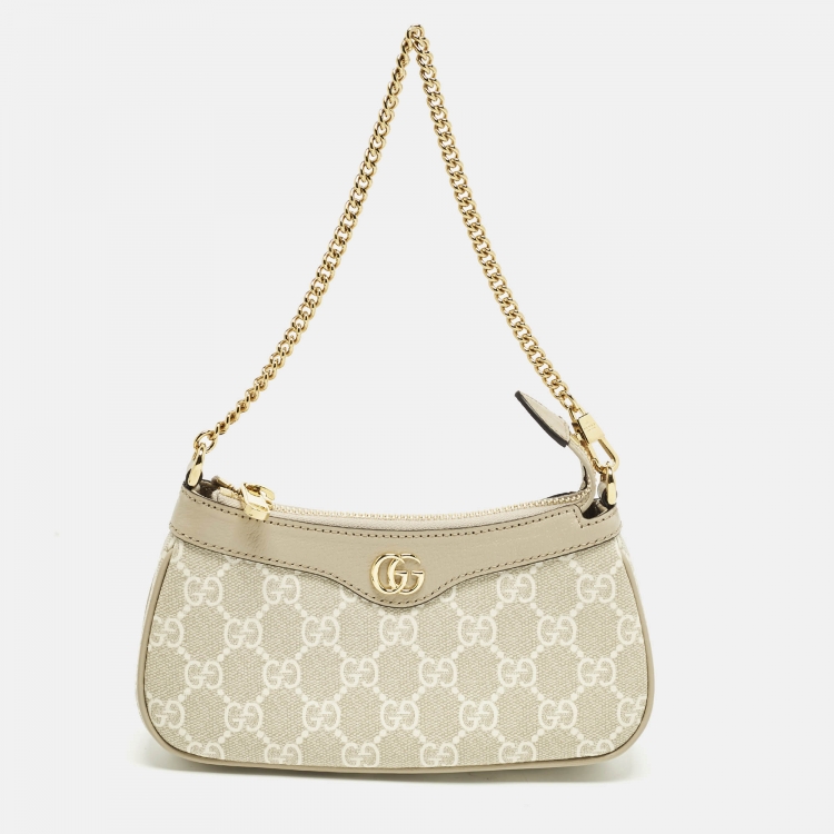 Pre Owned حقيبة كتف غوتشي ميني أوفيديا جلد وكانفاس جي جي سوبرين بني/بيج
