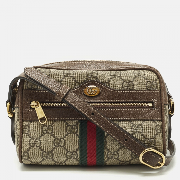 Pre Owned حقيبة كروس بودي غوتشي أوفيديا كانفاس جي جي سوبريم جلد صغيرة بيج/بني