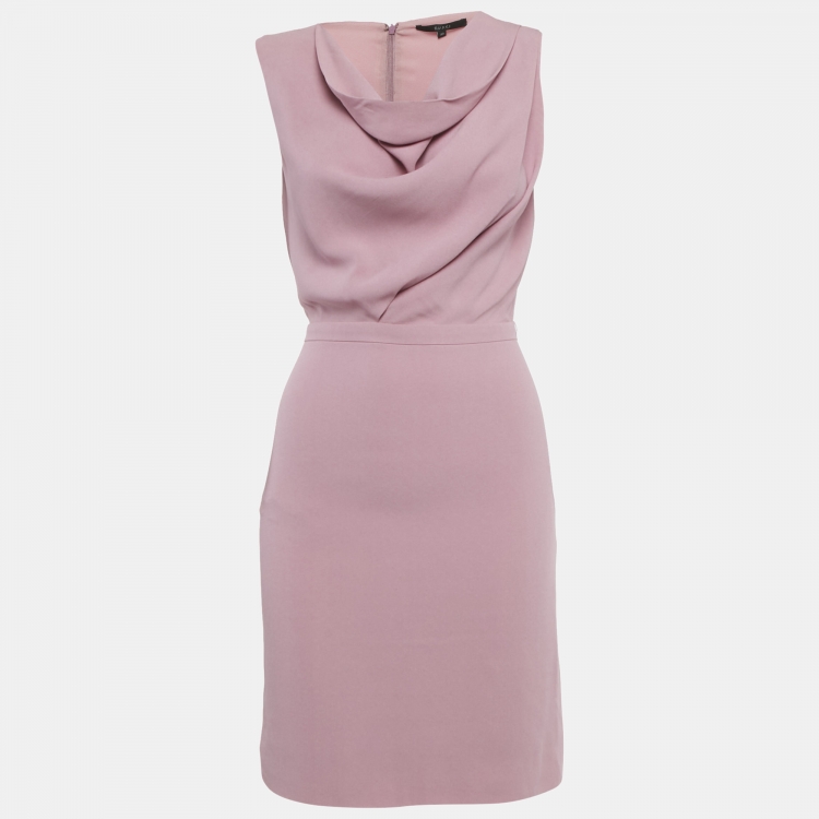 مملوكة مسبقًا فستان ميني غوتشي كريب وردي بياقة ملفوفة مقاس صغير