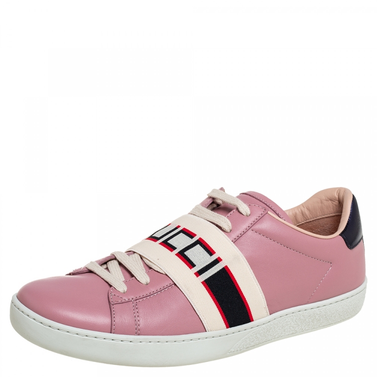 حذاء رياضي غوتشي ايس منخفض من أعلى مزين مخطط غوتشي جلد وردي مقاس 38.5