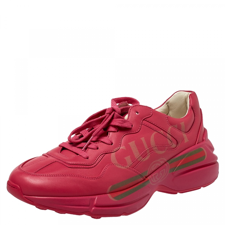 حذاء رياضي غوتشي ريتون فينتدج شعار الماركة نعل سميك جلد وردي مقاس 41