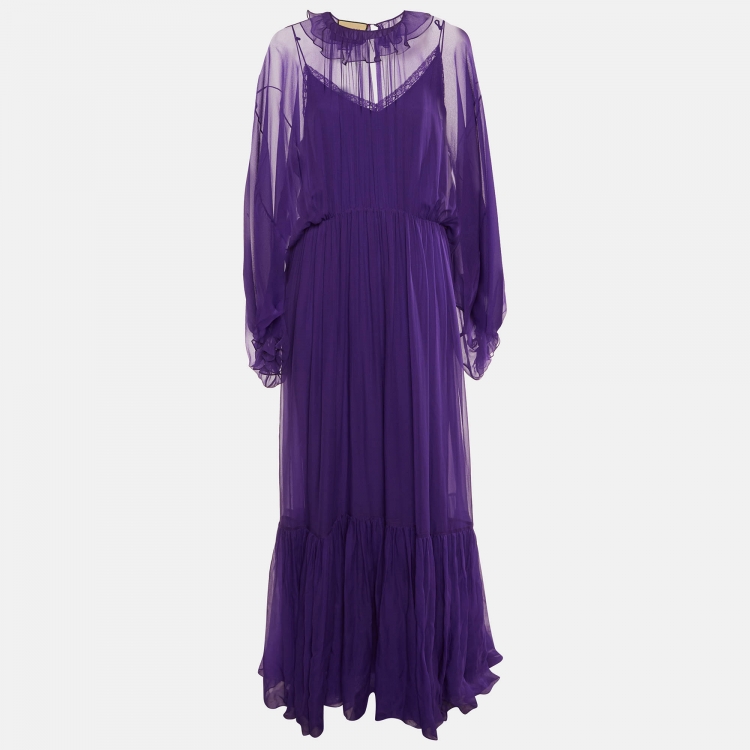 Pre Owned فستان غوتشي ماكسي مجمع شيفون بنفسجي مقاس كبير