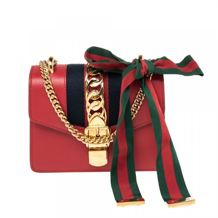 مملوكة مسبقًا حقيبة كروس غوتشي ويب ميني سيلفي جلد أحمر صغيرة بسلسلة