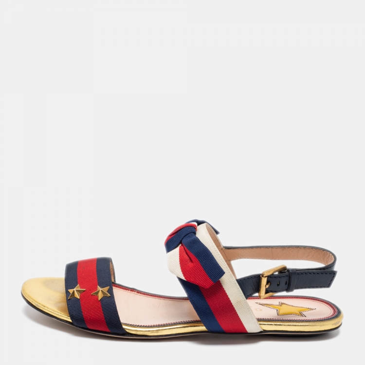 مملوكة مسبقًا صندل غوتشي فلات جلد وكانفاس شريط ويب أزرق كحلي / أحمر مقاس 37.5