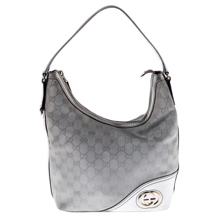 Pre Owned حقيبة غوتشي  New Britt جلد وكانفاس GG فضية