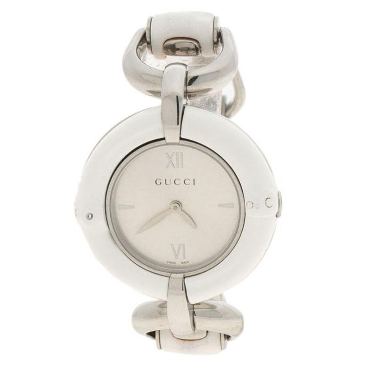 Pre Owned ساعة يد نسائية غوتشي 132.4 ستانلس ستيل بامبو بيضاء 36مم