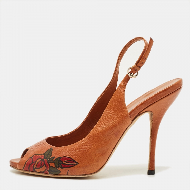 مملوكة مسبقًا حذاء كعب عالي غوتشي مقدمة مفتوحة سير خلفي جلد لامع أصفر مقاس 37