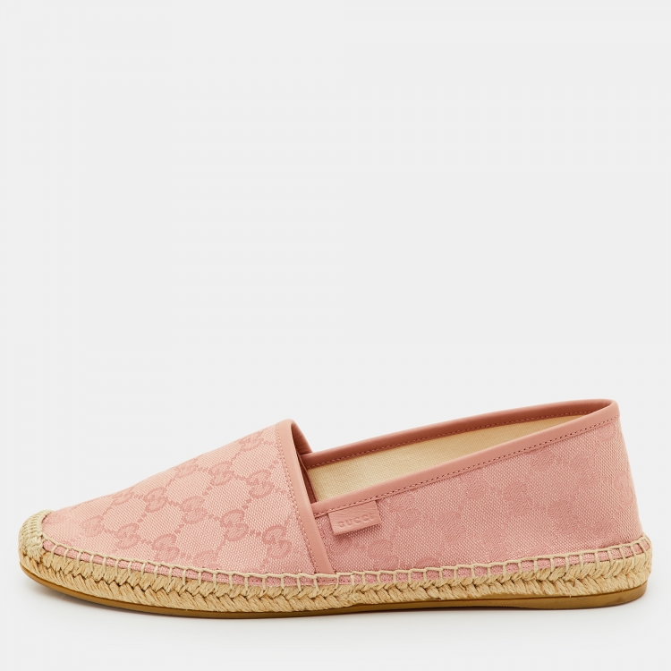 Pre Owned Gucci Size 41.5 Light Pink GG Canvas and Leather Slip On Espadrille Loafers