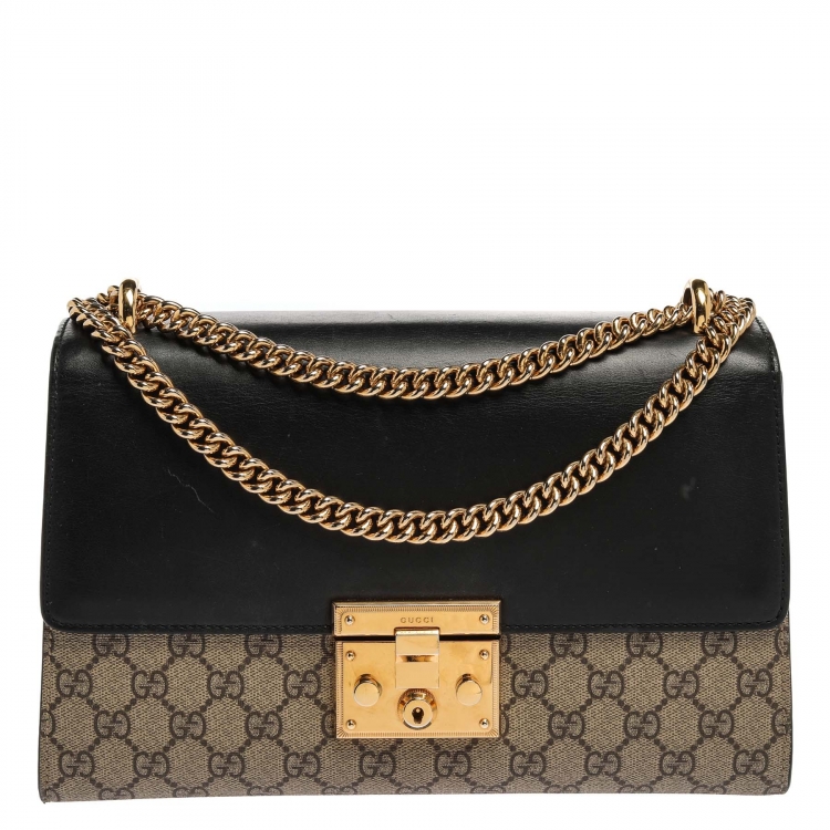 Pre Owned حقيبة كتف غوتشي قفل متوسطة جلد وكانفاس سوبريم جي جي ثلاثية اللون