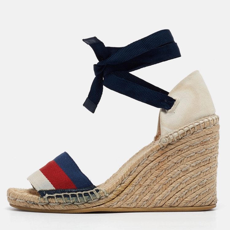 Pre Owned Gucci Tricolor Canvas Lilibeth Espadrille Sandals Size 37