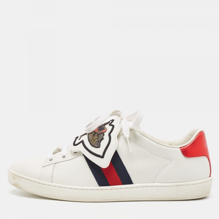 حذاء رياضي غوتشي أيس ويب جلد أبيض برقعات قابلة للفصل عنق منخفض مقاس 37.5