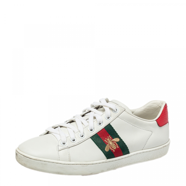 Pre Owned  حذاء  رياضي غوتشي جلد أبيض وكانفاس مزين ويب نحلة مقاس 37.5