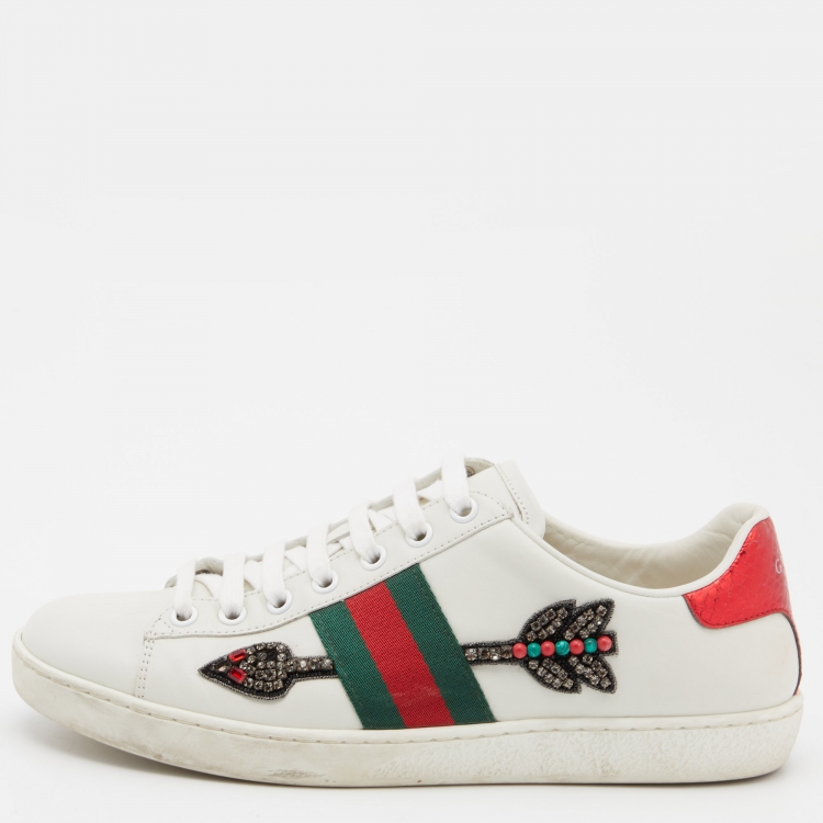 Pre Owned Gucci White Leather Arrow Embellished Ace Low Top Sneakers Size 37.5