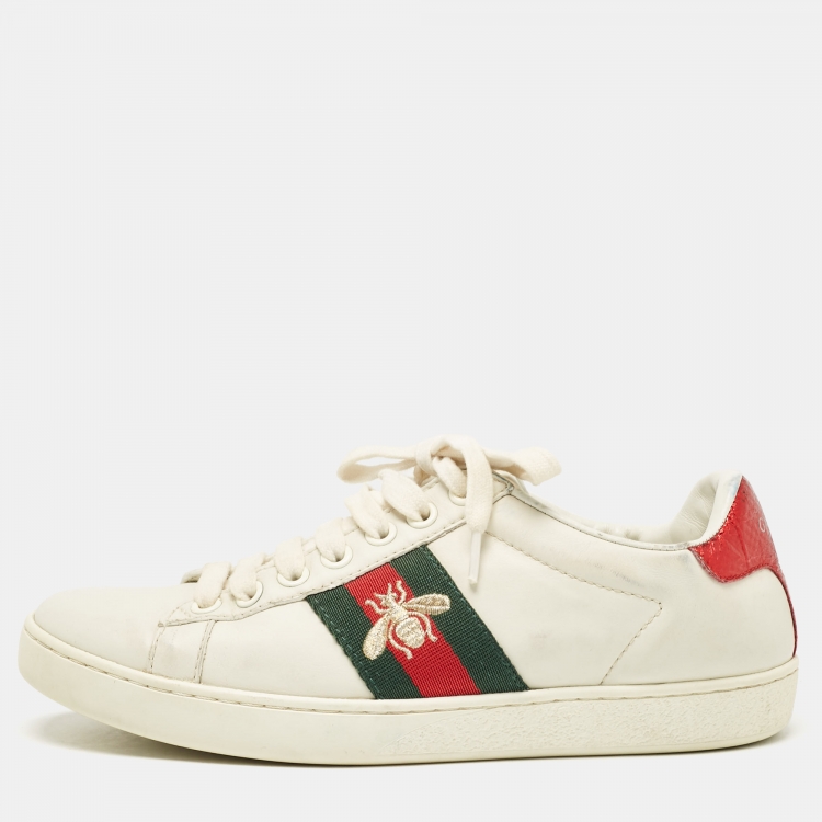 Pre Owned Gucci White Leather Embroidered Bee Ace Sneakers Size 37