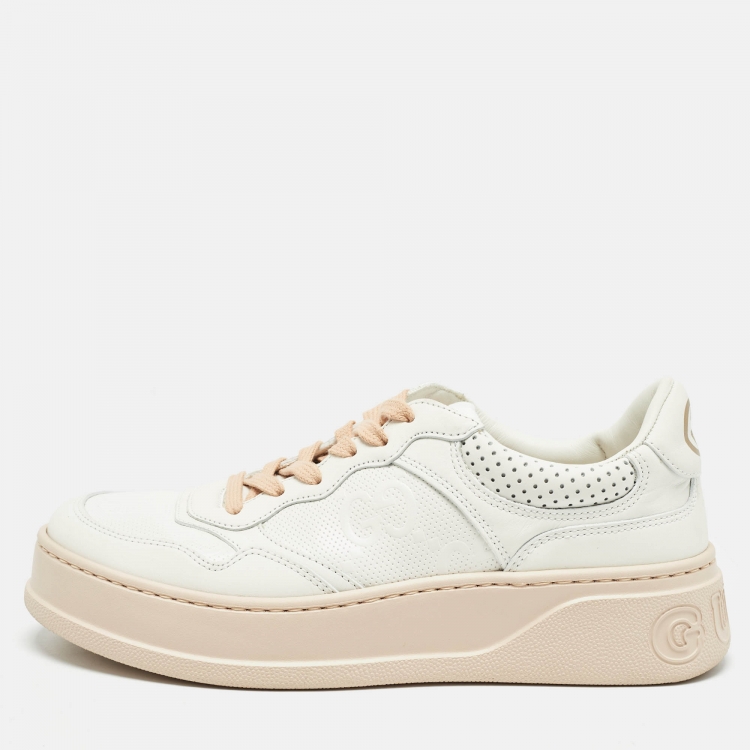 Pre Owned Gucci White Leather GG Low Top Sneakers Size 38