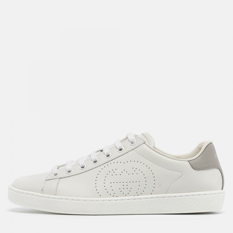 Gucci White Perforated Interlocking G Leather Ace Sneakers Size 38