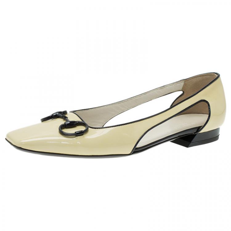 حذاء باليرينا فلات غوتشي جلد أصفر لامع هورسبيت مزين مقاس 37.5